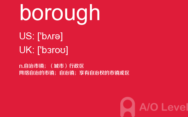 英国留学对于留学成绩的比拼越来越激烈,申请英国院校留学的一大指标a-level考试分数要求也水涨船高.虽然成绩只是申请的一部分,但不得不说,好看的英国a-level成绩是学生是否优秀的证据。放松一下跟着a/o-level考试网来学习一下a-level考试词汇borough的应用。如果您想了解自学alevel申请大学,为什么要考alevel课程,牛津大学alevel,新加坡a水准考题等关于a-level考试的相关资讯,请继续浏览并关注课窝a/o-level考试网。