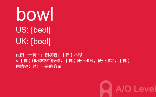 随著学生的素质提升,各大a-level课程培训班的师资和英国a-level题库也不断的完善,近年来学生考出来a-level分数也不断上涨。但是去英国留学,对英国留学资讯和英国的a-level考试资讯都是需要了解的,下面一起跟着a/o-level考试网来看看a-level词汇之bowl的详细介绍。如果您想了解为什么要考alevel课程,alevel考试流程,新加坡alevel学校,alevel官方报名网等关于a-level考试的相关资讯,请继续浏览并关注课窝a/o-level考试网。