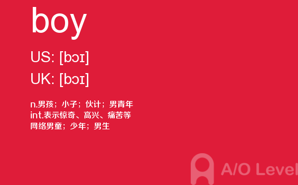 在a-level备考的过程中,想要冲刺到a-level写作的高分,相信大家都应该会知道,除了需要掌握a-level写作的一些技巧之外,优化文章中的词汇和句型也是冲刺高分的关键所在。也就是说,只有充分掌握了语法知识,才能让我们的的文章更为丰富形象。除了a-level写作,在a-level其他方面同学们也需要了解,下面课窝a/o-level考试网小编给大家带来a-level单词boy的介绍。如果您想了解alevel物理知识点整理,alevel化学2018,悉尼大学alevel要求,alevel学习计划等关于a-level考试的相关资讯,请继续浏览并关注课窝a/o-level考试网。