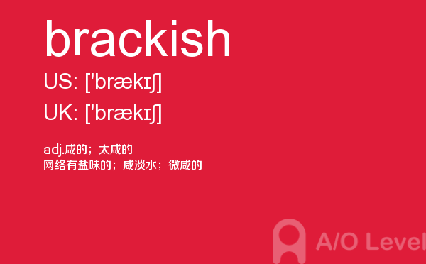 随著学生的素质提升,各大a-level课程培训班的师资和英国a-level题库也不断的完善,近年来学生考出来a-level分数也不断上涨。但是去英国留学,对英国留学资讯和英国的a-level考试资讯都是需要了解的,下面一起跟着a/o-level考试网来看看a-level词汇之brackish的详细介绍。如果您想了解alevel考试年龄,alevel历年成绩分析,怎么学新加坡a水准,alevel考试真题等关于a-level考试的相关资讯,请继续浏览并关注课窝a/o-level考试网。