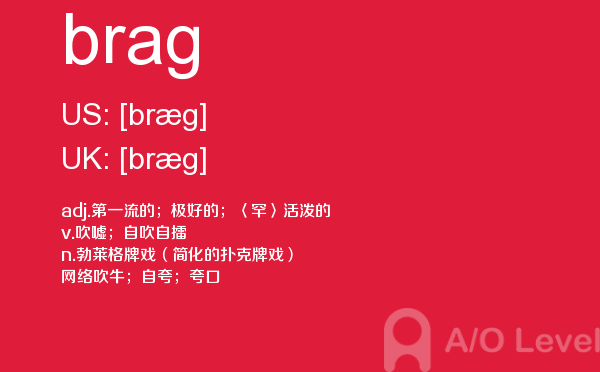 目前,a/olevel逐渐为人所熟知,很多学生都会主动了解alevel考试流程。同时也会抱怨a-level英语题比较难,任务重。那现在我们就放松一下,跟着a/o-level考试网小编来看看a-level考试中要积累的单词brag,认真的学习积累。如果您想了解alevel时间,alevel考试报名费,国内学alevel要多少钱,alevel化学等关于a-level考试的相关资讯,请继续浏览并关注课窝a/o-level考试网。