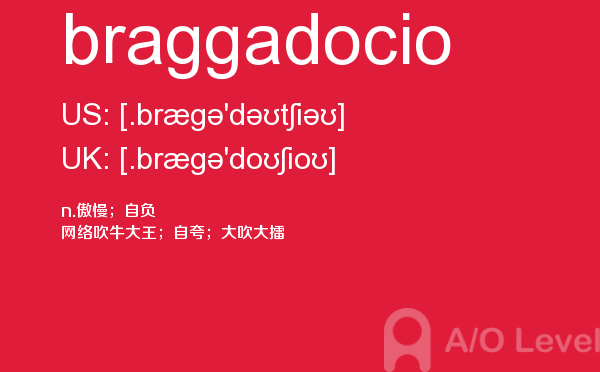 英国a-level入学考试的机会真的很少,每年就5-6月和10-11月两场考试。所以千万别因为不必要的原因,影响了a-level入学考试。为了让大家更好的在英国留学,a/o-level考试网会为大家带来a-level考试相关的资讯,一起来看看a/o-level考试网今天带来的词汇braggadocio的解析。如果您想了解alevel经济教材,alevel经济分类,新加坡a水准考试条件,奥克兰大学alevel等关于a-level考试的相关资讯,请继续浏览并关注课窝a/o-level考试网。