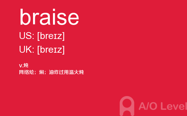 英国a-level考试是英国留学生去英国留学需要参加的考试,很多考生担心a-level考试分数要求高,英国a-level考试难度大,别担心,只要认真的学习a-level考试内容,小编相信大家一定能够考得a-level高分。今天a/o-level考试网给大家带来单词braise的全面解析。如果您想了解爱德思alevel答案,a水准成绩,新加坡a水准数学考试,alevel培训费等关于a-level考试的相关资讯,请继续浏览并关注课窝a/o-level考试网。