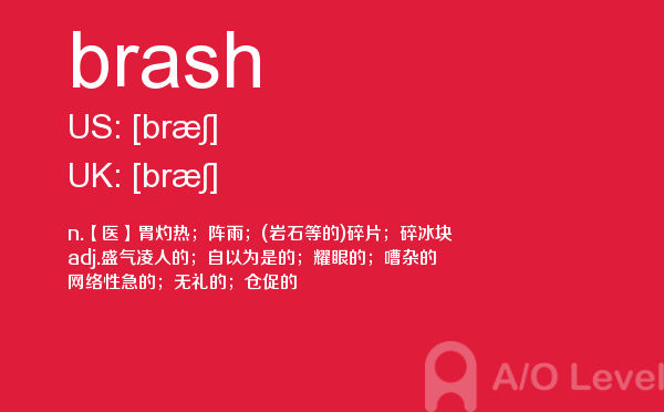 a- level课程一般在中国开设数学、进阶数学(或称高等数学)、物理、计算机学、会计学、商业学、经济学等课程供学生选择。那么关于alevel考生应该选哪些alevel课程呢?以后会给大家详细介绍,今天a/o-level考试网主要给大家全面介绍a-level词汇中的brash单词。如果您想了解英国alevel学校排名,alevel考试真题,alevel经济,alevel都有什么课程等关于a-level考试的相关资讯,请继续浏览并关注课窝a/o-level考试网。