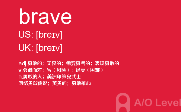 在a-level备考的过程中,想要冲刺到a-level写作的高分,相信大家都应该会知道,除了需要掌握a-level写作的一些技巧之外,优化文章中的词汇和句型也是冲刺高分的关键所在。也就是说,只有充分掌握了语法知识,才能让我们的的文章更为丰富形象。除了a-level写作,在a-level其他方面同学们也需要了解,下面课窝a/o-level考试网小编给大家带来a-level单词brave的介绍。如果您想了解alevel北京,alevel考试局,alevel科目,alevel上海等关于a-level考试的相关资讯,请继续浏览并关注课窝a/o-level考试网。