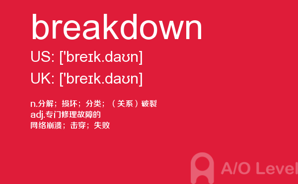 你知道考上a-level考试如何报名吗?最近很多人询问英国a-level考试有多难?到底要不要参加a-level考试培训?抛弃这些,a/o-level考试网老师告诉你,a-level单词最重要,今天带你学习breakdown怎么用,希望你认真的学习。如果您想了解alevel英语试题,alevel考试哪两个阶段,新加坡olevelalevel,alevel澳洲等关于a-level考试的相关资讯,请继续浏览并关注课窝a/o-level考试网。