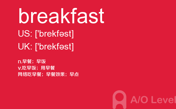 a-level 的考试将由所属的考试委员会分别于每年5-6月和10-11月在全球统一组织,成绩分别在8月和次年2月公布。关于a-level考试时间的具体内容,alevel考试网前面详细介绍过,大家可以查找alevel考试网前面的a-level考试资讯,alevel考试网每天会更新大量的alevel考试资讯,本篇要给大家介绍a-level单词breakfast的全面介绍。如果您想了解alevel培训哪家好,剑桥alevel课程,新加坡a水准,alevel真题试卷等关于a-level考试的相关资讯,请继续浏览并关注课窝a/o-level考试网。