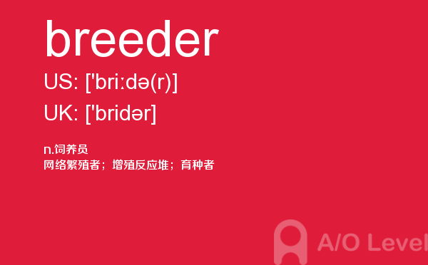 对于a-level考试,我们一再强调要加强a-level考试真题实战,多做英国a-level考试真题。放松一下,跟着a/o-level考试网来积累一下a-level考试中你会用到的单词breeder,对你的a-level考试会有很大的帮助。如果您想了解alevel考试报名费,英国alevel,alevel物理考a难吗,国内学alevel要多少钱等关于a-level考试的相关资讯,请继续浏览并关注课窝a/o-level考试网。