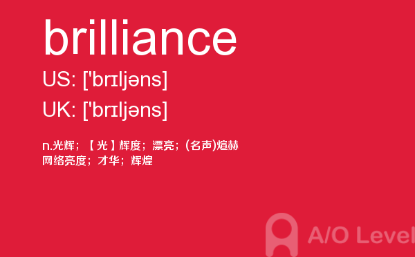 虽然英国a-level院校招生官常把“成绩不是决定录取与否的唯一因素”挂在嘴边,但不得不承认,a-level分数是学生优秀与否的有力证据,取得a-level成绩高分是肯定是优先考虑的。放松一下,先跟着a/o-level考试网来看看今天小编带来的是a-level单词brilliance的介绍。如果您想了解alevel考试考点,alevel经济学答题技巧,剑桥a水准,alevel考试安排等关于a-level考试的相关资讯,请继续浏览并关注课窝a/o-level考试网。