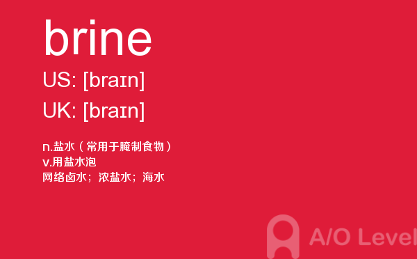 目前,a/olevel逐渐为人所熟知,很多学生都会主动了解alevel考试流程。同时也会抱怨a-level英语题比较难,任务重。那现在我们就放松一下,跟着a/o-level考试网小编来看看a-level考试中要积累的单词brine,认真的学习积累。如果您想了解alevel考试价格,alevel经济知识点,爱德思alevel2017真题,a水准一年等关于a-level考试的相关资讯,请继续浏览并关注课窝a/o-level考试网。