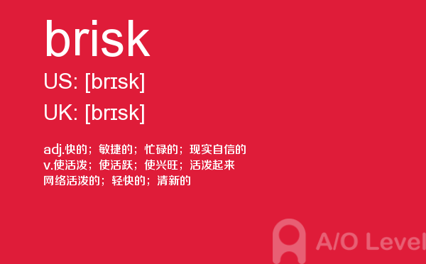 a-level考试报名须知是必须要懂得,这样在面对英国a-level入学考试的时候自己也知道应该怎么面对。为了提高考生们的a-level模拟考卷成绩,a/o-level考试网会经常给大家带来a-level考试资讯,下面就是今天课窝a/o-level考试网小编给大家讲解关于a-level考试词汇brisk怎么用。如果您想了解新加坡a水准预备班,上海alevel辅导,alevel考试考点,alevel经济essay等关于a-level考试的相关资讯,请继续浏览并关注课窝a/o-level考试网。