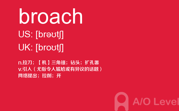 a- level课程一般在中国开设数学、进阶数学(或称高等数学)、物理、计算机学、会计学、商业学、经济学等课程供学生选择。那么关于alevel考生应该选哪些alevel课程呢?以后会给大家详细介绍,今天a/o-level考试网主要给大家全面介绍a-level词汇中的broach单词。如果您想了解alevel英语,什么是alevel考试,alevel数学和ap数学,国内alevel培训等关于a-level考试的相关资讯,请继续浏览并关注课窝a/o-level考试网。