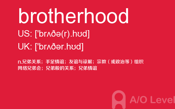 a- level课程一般在中国开设数学、进阶数学(或称高等数学)、物理、计算机学、会计学、商业学、经济学等课程供学生选择。那么关于alevel考生应该选哪些alevel课程呢?以后会给大家详细介绍,今天a/o-level考试网主要给大家全面介绍a-level词汇中的brotherhood单词。如果您想了解alevel生物,alevel考试报名时间,考alevel多少钱,alevel阅读技巧等关于a-level考试的相关资讯,请继续浏览并关注课窝a/o-level考试网。