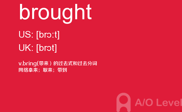 英国a-level学校,从教学质量上来看私立学校更占优势,大部分中国留学生也选择私立学校来读,不过一般都是提前一年来申请学校。中国目前也有20几所a-level学校,每年也同样有走进剑桥牛津等世界顶级大学的学生。所以在国外和在国内都可以选择a-level学校来学习。在前面关于a-level选校的问题已经详细介绍过,那么今天a/o-level考试网小编主要想介绍的是a-level重难点词汇brought。希望对大家有帮助。如果您想了解alevel物理考a难吗,alevel时间,alevel零基础,alevel课程等关于a-level考试的相关资讯,请继续浏览并关注课窝a/o-level考试网。