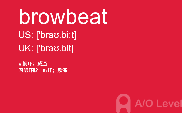 英国a-level考试报名费很好解决,那怎样才能达到a-level考试词汇量要求呢?别再纠结于a-level考试分数要求了,今天我们来一起看看a/o-level考试网今天带给你的a-level单词browbeat的讲解。如果您想了解alevel课程有年龄限制,爱德思alevel2017真题,alevel化学辅导,a水准考试等关于a-level考试的相关资讯,请继续浏览并关注课窝a/o-level考试网。