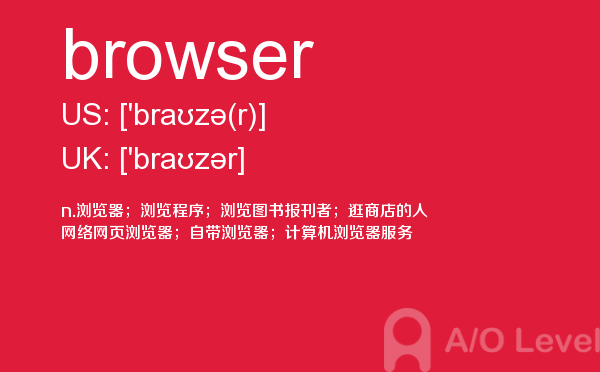 虽然英国a-level院校招生官常把“成绩不是决定录取与否的唯一因素”挂在嘴边,但不得不承认,a-level分数是学生优秀与否的有力证据,取得a-level成绩高分是肯定是优先考虑的。放松一下,先跟着a/o-level考试网来看看今天小编带来的是a-level单词browser的介绍。如果您想了解考alevel有年龄限制吗,alevel课程难吗,新加坡最好的a水准预科学校,上海alevel辅导等关于a-level考试的相关资讯,请继续浏览并关注课窝a/o-level考试网。