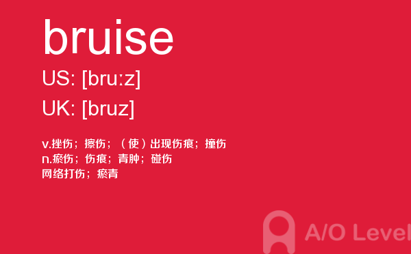 就读于国内学校的学生, 在申请英国学校时需要提交英国a-level考试成绩。很多考生因此英国a-level考试搞得头疼,放松一下,跟着a/o-level考试网来看看英国留学资讯吧!今天课窝a/o-level考试网小编给大家带来a-level考试重点词汇bruise的全解,对你肯定有帮助。如果您想了解alevel培训哪家好,南京alevel,alevel英语是什么,alevel等关于a-level考试的相关资讯,请继续浏览并关注课窝a/o-level考试网。