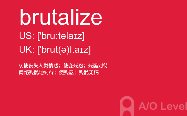 现在很多人来咨询a-level考试录取率,英国a-level考试题库的家长也依然不减,而考生们则更关心a-level教材以及a-level考试培训课程是什么样的。a/o-level考试网都会解答您。今天小编带来a/o-level考试网的内容是关于a-level词汇的brutalize单词的详细介绍。如果您想了解alevel都有什么课程,alevel课程怎么申请,alevel法律,alevel模考等关于a-level考试的相关资讯,请继续浏览并关注课窝a/o-level考试网。