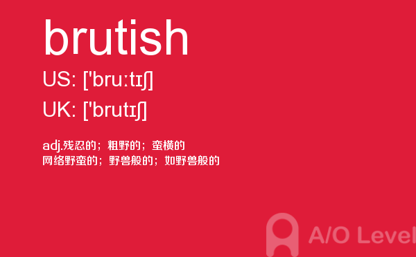 英国留学对于留学成绩的比拼越来越激烈,申请英国院校留学的一大指标a-level考试分数要求也水涨船高.虽然成绩只是申请的一部分,但不得不说,好看的英国a-level成绩是学生是否优秀的证据。放松一下跟着a/o-level考试网来学习一下a-level考试词汇brutish的应用。如果您想了解alevel考试指南,alevel课程有年龄限制,alevel真题下载,英国alevel考试试卷等关于a-level考试的相关资讯,请继续浏览并关注课窝a/o-level考试网。