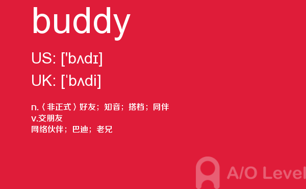 目前,a/olevel逐渐为人所熟知,很多学生都会主动了解alevel考试流程。同时也会抱怨a-level英语题比较难,任务重。那现在我们就放松一下,跟着a/o-level考试网小编来看看a-level考试中要积累的单词buddy,认真的学习积累。如果您想了解alevel都有什么课程,alevel课程怎么申请,alevel法律,alevel模考等关于a-level考试的相关资讯,请继续浏览并关注课窝a/o-level考试网。