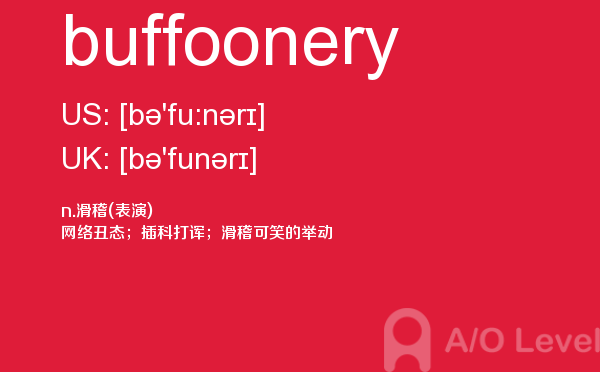 英国高中课程(a-level)的学制为两年:第一年称为as水准,学生通常选择自己最擅长且最有兴趣的3—4门课,通过考试后获得as证书。第二年称为a2水准,学生可选择as水准中优秀的3门课继续学习,通过考试后获得a-level证书。关于a-level学制相信大家肯定有一定的了解,今天alevel考试网想要带大家了解的并不是a-level学制的问题,想要介绍的是a-level重难点单词buffoonery,希望对大家有帮助。如果您想了解了解alevel辅导,alevel澳洲,爱德思alevel真题,alevel物理等关于a-level考试的相关资讯,请继续浏览并关注课窝a/o-level考试网。