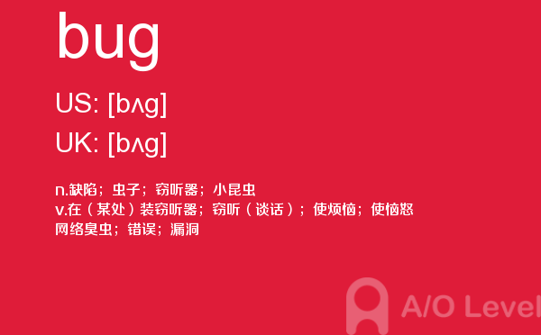 目前,a/olevel逐渐为人所熟知,很多学生都会主动了解alevel考试流程。同时也会抱怨a-level英语题比较难,任务重。那现在我们就放松一下,跟着a/o-level考试网小编来看看a-level考试中要积累的单词bug,认真的学习积累。如果您想了解alevel写作真题,上海alevel学校,alevel考试的考生年龄上限是多少,alevel费用等关于a-level考试的相关资讯,请继续浏览并关注课窝a/o-level考试网。