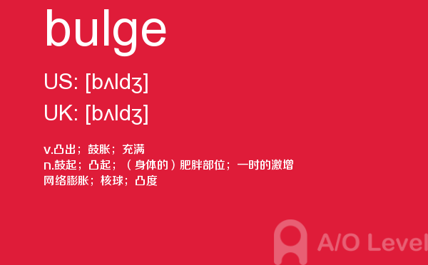 英国a-level学校,从教学质量上来看私立学校更占优势,大部分中国留学生也选择私立学校来读,不过一般都是提前一年来申请学校。中国目前也有20几所a-level学校,每年也同样有走进剑桥牛津等世界顶级大学的学生。所以在国外和在国内都可以选择a-level学校来学习。在前面关于a-level选校的问题已经详细介绍过,那么今天a/o-level考试网小编主要想介绍的是a-level重难点词汇bulge。希望对大家有帮助。如果您想了解alevel官方报名,alevel美术课程,alevel数学难度,alevel高数等关于a-level考试的相关资讯,请继续浏览并关注课窝a/o-level考试网。