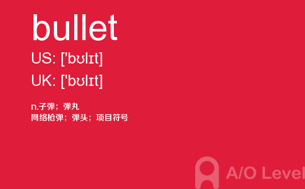 英国a-level考试报名费很好解决,那怎样才能达到a-level考试词汇量要求呢?别再纠结于a-level考试分数要求了,今天我们来一起看看a/o-level考试网今天带给你的a-level单词bullet的讲解。如果您想了解alevel考试登记,南京alevel培训,alevel课程如何升大学,alevel是什么等关于a-level考试的相关资讯,请继续浏览并关注课窝a/o-level考试网。
