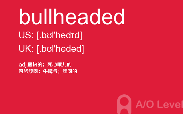 随著学生的素质提升,各大a-level课程培训班的师资和英国a-level题库也不断的完善,近年来学生考出来a-level分数也不断上涨。但是去英国留学,对英国留学资讯和英国的a-level考试资讯都是需要了解的,下面一起跟着a/o-level考试网来看看a-level词汇之bullheaded的详细介绍。如果您想了解alevel怎么自学,a水准数学,alevel考试指南,alevel自学选什么等关于a-level考试的相关资讯,请继续浏览并关注课窝a/o-level考试网。