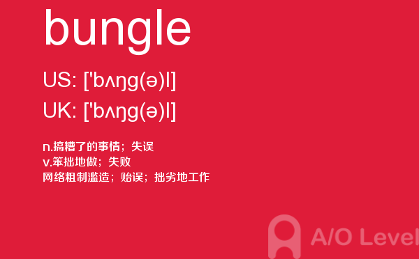 英国a-level学校,从教学质量上来看私立学校更占优势,大部分中国留学生也选择私立学校来读,不过一般都是提前一年来申请学校。中国目前也有20几所a-level学校,每年也同样有走进剑桥牛津等世界顶级大学的学生。所以在国外和在国内都可以选择a-level学校来学习。在前面关于a-level选校的问题已经详细介绍过,那么今天a/o-level考试网小编主要想介绍的是a-level重难点词汇bungle。希望对大家有帮助。如果您想了解a水准,alevel经济教材电子版,alevel国际课程,a水准考试预备班等关于a-level考试的相关资讯,请继续浏览并关注课窝a/o-level考试网。