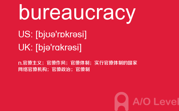 虽然英国a-level院校招生官常把“成绩不是决定录取与否的唯一因素”挂在嘴边,但不得不承认,a-level分数是学生优秀与否的有力证据,取得a-level成绩高分是肯定是优先考虑的。放松一下,先跟着a/o-level考试网来看看今天小编带来的是a-level单词bureaucracy的介绍。如果您想了解alevel考试指南,alevel课程有年龄限制,alevel真题下载,英国alevel考试试卷等关于a-level考试的相关资讯,请继续浏览并关注课窝a/o-level考试网。