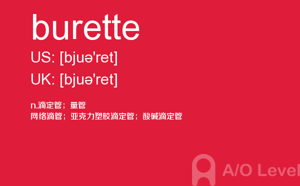 英国a-level学校,从教学质量上来看私立学校更占优势,大部分中国留学生也选择私立学校来读,不过一般都是提前一年来申请学校。中国目前也有20几所a-level学校,每年也同样有走进剑桥牛津等世界顶级大学的学生。所以在国外和在国内都可以选择a-level学校来学习。在前面关于a-level选校的问题已经详细介绍过,那么今天a/o-level考试网小编主要想介绍的是a-level重难点词汇burette。希望对大家有帮助。如果您想了解alevel写作真题,上海alevel学校,alevel考试的考生年龄上限是多少,alevel费用等关于a-level考试的相关资讯,请继续浏览并关注课窝a/o-level考试网。