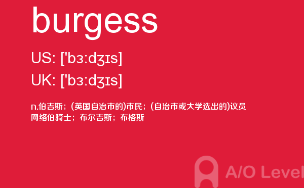 a-level课程包含70多门供学生选择,一般学生选择3至4门来学,中国学生在数学学科上有很大的优势,一般学生都会选择基础数学。学生选择课程时,一般要考虑现在自己的优势科目和将来的发展方向,即你想选择哪个大学、什么专业,从而根据他们的要求有的放矢地选课。关于alevel选课后续会详细介绍,下面带来a-level考试词汇burgess的详细介绍。如果您想了解alevel怎么自学,a水准数学,alevel考试指南,alevel自学选什么等关于a-level考试的相关资讯,请继续浏览并关注课窝a/o-level考试网。