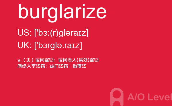 对于a-level考试,我们一再强调要加强a-level考试真题实战,多做英国a-level考试真题。放松一下,跟着a/o-level考试网来积累一下a-level考试中你会用到的单词burglarize,对你的a-level考试会有很大的帮助。如果您想了解新加坡a水准考试科目,alevel能不能代替sat,国际部高中课程alevel,alevel香港中文大学等关于a-level考试的相关资讯,请继续浏览并关注课窝a/o-level考试网。