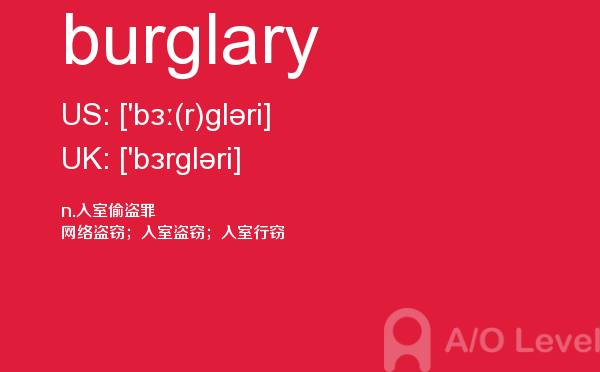 a-level(general certificate of education advanced level ),英国高中课程,是英国全民课程体系,是英国普通中等教育证书考试高级水平课程,也是英国学生的大学入学考试课程。今天alevel考试网小编给大家带来的alevel考试单词burglary的详细介绍。希望大家能够认真的阅读。如果您想了解alevel主要课程,alevel真题网,alevel考试评分,alevel申请新加坡等关于a-level考试的相关资讯,请继续浏览并关注课窝a/o-level考试网。