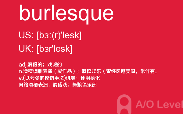 英国a-level考试是英国留学生去英国留学需要参加的考试,很多考生担心a-level考试分数要求高,英国a-level考试难度大,别担心,只要认真的学习a-level考试内容,小编相信大家一定能够考得a-level高分。今天a/o-level考试网给大家带来单词burlesque的全面解析。如果您想了解alevel数学公式表,alevel申请,alevel学校,英国alevel学校排名等关于a-level考试的相关资讯,请继续浏览并关注课窝a/o-level考试网。