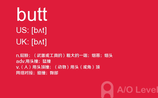 英国a-level考试报名费很好解决,那怎样才能达到a-level考试词汇量要求呢?别再纠结于a-level考试分数要求了,今天我们来一起看看a/o-level考试网今天带给你的a-level单词butt的讲解。如果您想了解alevel考试登记,南京alevel培训,alevel课程如何升大学,alevel是什么等关于a-level考试的相关资讯,请继续浏览并关注课窝a/o-level考试网。