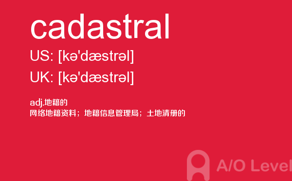 在a-level备考的过程中,想要冲刺到a-level写作的高分,相信大家都应该会知道,除了需要掌握a-level写作的一些技巧之外,优化文章中的词汇和句型也是冲刺高分的关键所在。也就是说,只有充分掌握了语法知识,才能让我们的的文章更为丰富形象。除了a-level写作,在a-level其他方面同学们也需要了解,下面课窝a/o-level考试网小编给大家带来a-level单词cadastral的介绍。如果您想了解alevel网上报名,alevel国际课程介绍,新加坡a水准学费,alevel范文等关于a-level考试的相关资讯,请继续浏览并关注课窝a/o-level考试网。