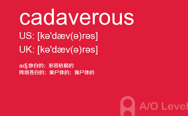 英国留学考试a-level考试考什么?a-level考试题型一定要注意积累和总结。课窝a/o-level考试网小编每天会给大家带来a-level考试的相关资讯,今天带来a-level单词cadaverous的解析,希望大家认真的积累a-level考试词汇。如果您想了解alevel词汇表,alevel生物难度,申请新加坡a水准,alevel作文等关于a-level考试的相关资讯,请继续浏览并关注课窝a/o-level考试网。